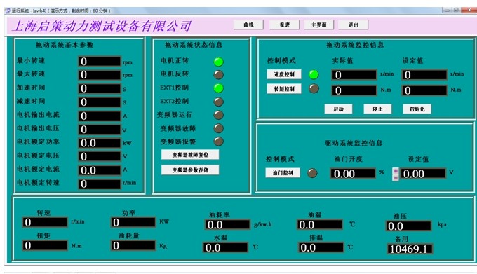 控制系統(tǒng)與測功機負載控制閥和發(fā)動機油門執(zhí)行器相連,實現(xiàn)恒轉(zhuǎn)速、恒位置的控制?墒謩硬僮?稍O(shè)定報警,并將試驗數(shù)據(jù)和結(jié)果儲存、打印。
